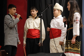 Там се изявиха на сцена малки и по-големи ученици от различните класове и творческите клубове на училището. Музикалната програма започна с емблематичната песен на джулюнския детски поет Цоньо Калчев „Сладкопойна чучулига“. Тържеството включваше и рецитал по стихове на Дядо Славейков, кратка възстановка, която проследи най-важните моменти от живота и делото на патрона, изпълнение на песните „Хубава си, моя горо“ и „Айде да идем, Яно“, танцово изпълнение на учениците от начален етап на образование, както и драматизация по Каравеловата повест „Маминото детенце“. Като истински артисти децата отлично представиха героите на Любен Каравелов с идеята да внушат на гостите, че и днес творбата е актуална и поставя важни житейски въпроси за възпитанието на децата.