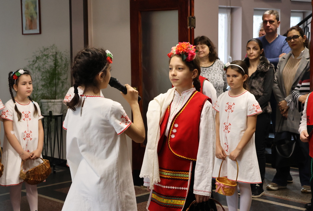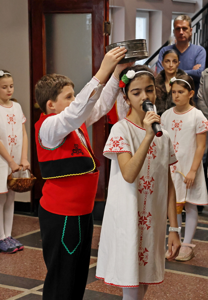 Децата, които посетиха предпразнично кмета и екипа му, бяха възпитаници на СУ „Максим Райкович“. Учениците бяха от третите класове на гимназията, ръководени от учителите Стефка Обрешкова и Николета Петрова. Те изпълниха много богата програма с песни, хора, наричания и типични за празника ритуални действия. Наричайки на кмета Васил Христов като стопанин на дома, те отправиха своите послания за здраве, берекет и благополучие на цялата община.