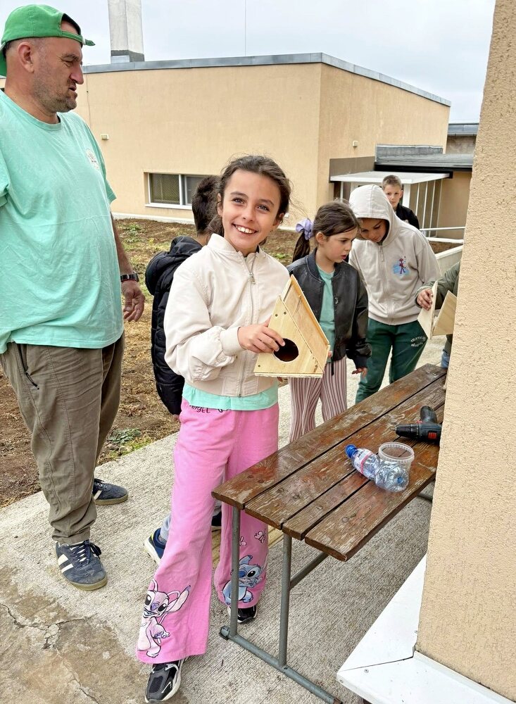 Малките еколози като достойни природозащитници не пропуснаха да се погрижат и за дворното пространство. Те изработиха къщички за птици, засадиха дръвчета и цветя и варосаха дърветата в училищните зелени площи.