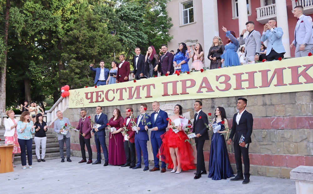 На сцената кметът на общината д-р Ивелина Гецова и директорът на училището Даниела Арабаджиева посрещнаха порасналите момичета и момчета с цветя, плакети, прегръдки и благопожелания към всеки. Класните ръководители на двата класа Здравка Евтимова и Пламен Граматиков също дефилираха и споделиха емоцията със своите пораснали деца. На сцената всички бяха напътствани от директора и кмета, а от името на своите съученици, благодарност към общинското и училищното ръководства, към учителите и родителите, отправи абитуриентката от XII „А“ клас Йоанна Хубанова.