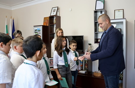В края на гостуването си, подрастващите споделиха колко интересно е всичко в Общината, а кметът Христов, председателят Добрев и заместник-кметът Емилия Жилиева ги поканиха за обща снимка пред логото на града в заседателната зала и ги почерпиха за предстоящия празник.
