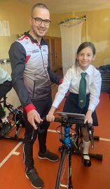 Проведе се традиционното велосъстезание „МТБ Скул - 2025“ 30.10.2025 Проведе се традиционното велосъстезание „МТБ Скул - 2025“ Местната комисия за борба срещу противообществените прояви на малолетните и непълнолетните и тази година проведе традиционно организиращото се велосъстезание „МТБ Скул - 2025“, което от 1-вото си издание в 2020 година и до днес се радва на много голям интерес от страна на децата. И в тазгодишното издание комисията си партнира успешно със Спортен колоездачен клуб „Браунтим“ - гр. Лясковец и Средно училище „Максим Райкович“ - гр. Лясковец, като съорганизатори. За 1-ва година форматът на състезание по колоездене „МТБ Скул - 2025“, се проведе с повече техническа подготовка във физкултурния салон на I-ви корпус на СУ „Максим Райкович“ - гр. Лясковец. Развитието на технологиите дава възможност спортисти, които се занимават с колоездене да тренират със специални велотренажори със специализиран софтуер, който симулира трасе с различни нива на трудност и дължина. В спортната инициатива днес бе зададен еднокилометров маршрут със средно ниво на денивелация и се включиха ученици от 4-ти до 12-ти клас, под треньорските напътствия на Калин Пенчев и Димитър Дамянов от Спортен колоездачен клуб „Браунтим“ - гр. Лясковец. С оглед статичността на велосипедите - тренажори в състезанието успяха да се включат и деца, които не могат да карат велосипед, а организаторите не се притесняваха от рисковете за падане от велосипед от страна на участниците. Първи в еднокилометровата надпревара се престраши да се включи ученикът Лиле Александров от VI-ти „а“ клас, който даде и едно от най-добрите времена 1:41 мин. Сред дамите 1-ва даде старта неговата съученичка Бояна Маринова. С времето 1:41 мин., сред момичетата завърши Йоана Топалова от V-ти „б“ клас, Никол Дерманска от VI-ти „б“ клас бе втора с време 1:42 мин., а Елия Кълчишкова от същия клас стана трета с 1:45 мин. С време 1:38 финишираха Денислав Гинев от X-ти „а“ клас и Искрен Иванов от VI-ти „б“ клас. В двучасовото състезание взеха участие общо 87 ученика от СУ „Максим Райкович“ - гр. Лясковец, както и учителят - Нина Савова и Цветомила Берова - секретар на МКБППМН при Община Лясковец, които дадоха не лошо време и добър спортен пример на подрастващите. Всички участници получиха светлоотразителни светлини подходящи както за велосипеди, така и за тротинетки, и бяха помолени да ги ползват по предназначение, за да създават по-спокойна среда на пътя карайки своите велосипеди в свободното време. В края на състезанието децата отново попитаха: „Кога ще има пак състезание?“ и по традиция се разделиха с г-жа Берова с „До нови срещи!“ в превантивната програма на МКБППМН при Община Лясковец.