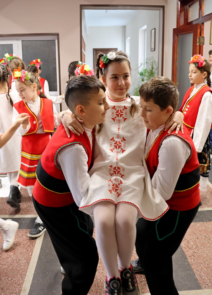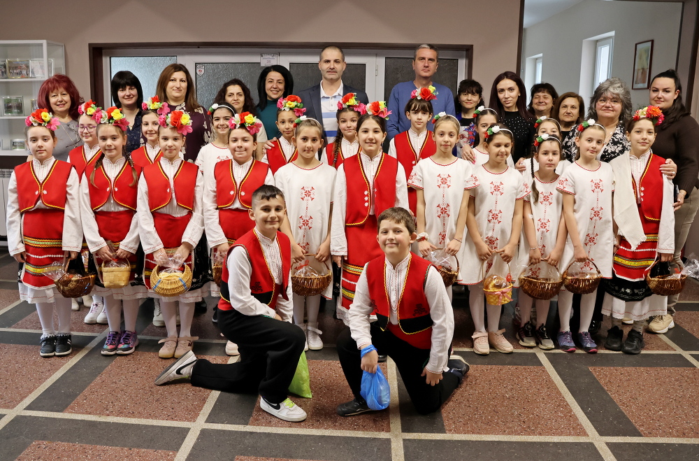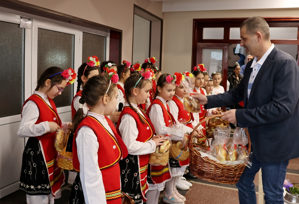 При кмета и екипа му лазаруваха ученици от СУ „Максим Райкович“ 02.04.2026 При кмета и екипа му лазаруваха ученици от СУ „Максим Райкович“ Лазаровден се отбелязва всяка година в съботата преди Цветница и е празник на нивите, горите и девойките, които чрез своите ритуали внасят благословия в домовете. И тази година местната власт беше топло и сърдечно благословена от най-чистите души – детските. В навечерието на Лазаровден, сградата на Община Лясковец оживя от звънките гласове и пъстрите носии на малки лазарки. По стара българска традиция те дойдоха в Община Лясковец, за да изпълнят обичая „Лазаруване“ - символ на събуждащата се природа и надеждата за плодородна година. Децата, които посетиха предпразнично кмета и екипа му, бяха възпитаници на СУ „Максим Райкович“. Учениците бяха от третите класове на гимназията, ръководени от учителите Стефка Обрешкова и Николета Петрова. Те изпълниха много богата програма с песни, хора, наричания и типични за празника ритуални действия. Наричайки на кмета Васил Христов като стопанин на дома, те отправиха своите послания за здраве, берекет и благополучие на цялата община. Кметът Христов, заместниците му Емилия Жилиева и инж. Деница Коева, както и служители на администрацията, изслушаха с внимание сладкогласните лазарки и аплодираха всички участници за перфектното изпълнение на обичая. Христов похвали децата, че съхраняват българските обреди, че знаят всичко за тях, а на учителите благодари, че ги учат да ги пресъздават. В кошничките им домакинът сложи козунаци и всички взаимно си пожелаха топли и споделени празници.